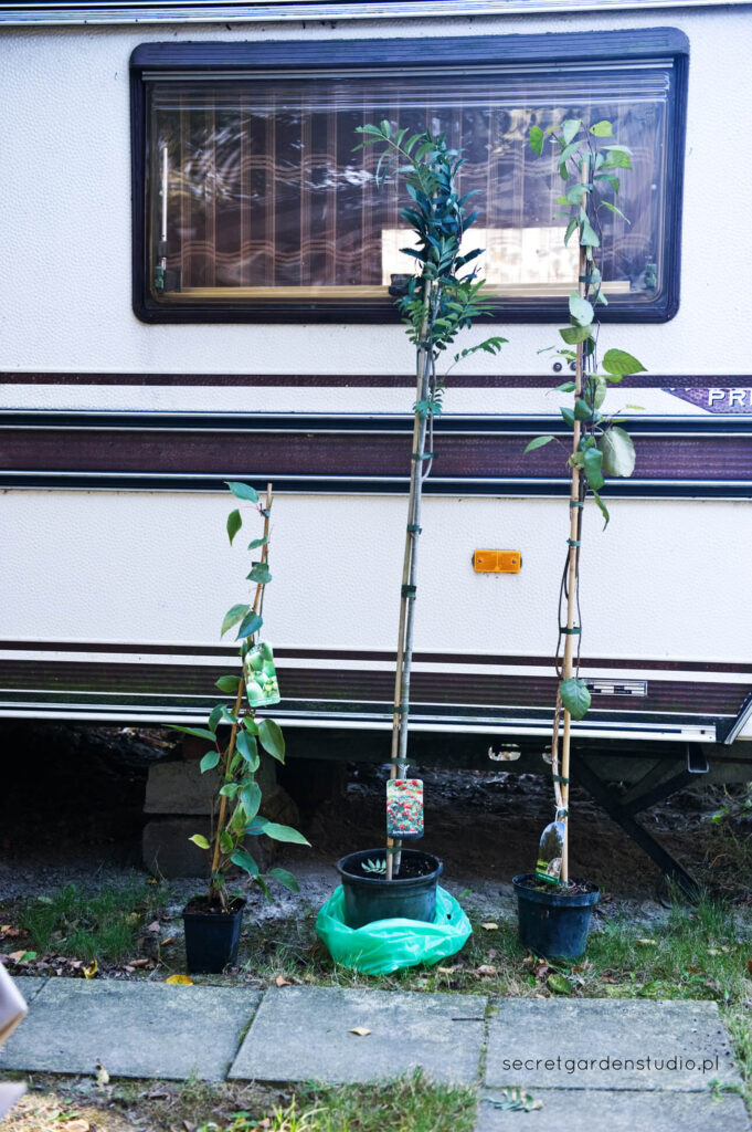 Lato było chaotyczne, a jesień pracowita. Oprócz wspomnianych wcześniej odmian jabłoni i gruszy, w ogrodzie znalazła się jeszcze jedna jarzębina, klon jesionolistny Flamingo, dwie nowe brzozy Doorenbos, a także mini kiwi Actinidia Issai. Długo myślałam nad wyborem właściwego pnącza na nową pergolę łączącą Secret Garden z ogrodem warzywnym i padło na tą właśnie roślinkę. Po pierwsze – jest jadalna i podobno całkiem smaczna – po drugie ma ładne listki, po trzecie już zapomniałam 😀