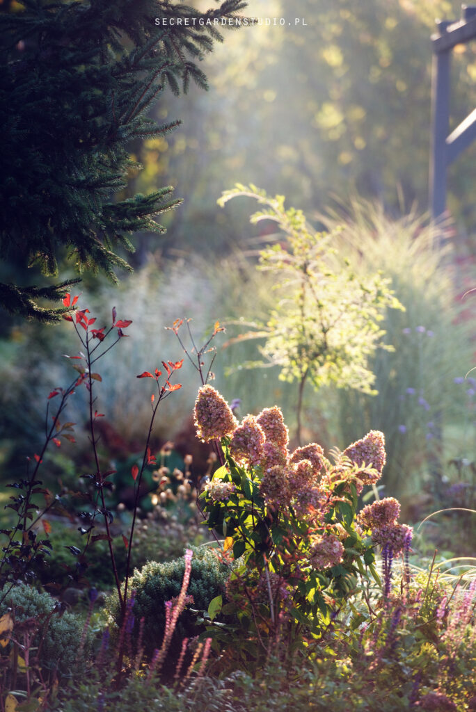 Więc sobie tak działam trochę po omacku, trochę czerpiąc z rozmaitych Pinterestów, a trochę wdrażając własne wizje ogrodu. Po pierwsze, jesienią 2022 roku zakupiliśmy w nadleśnictwie 800 sztuk grabów, którymi to obsadziliśmy się dookoła, tworząc żywopłot. Jestem zdziwiona jak szybko rosną. Niedługo czeka mnie maraton z sekatorem. Po drugie, dokupiłam trochę różnych drzew „wysokich”, część w postaci dużych sadzonek, które do samochodu łatwo wejść nie chciały. Teraz zajmę się niższymi piętrami i będą próbować wszystko razem jakoś zgrać z resztą, żeby tworzyło spójną całość. Planuję jeszcze wizytę w nadleśnictwie wiosną, żeby dokupić trochę buków, głogów, modrzewi i jeszcze może świerków żeby zalesić odrobinę jeden taki zakątek, przez który prześwituje mi w dystansie ulica. I jak już to wszystko powsadzam to zajmę się rabatami bliżej domu, które są do poprawki i do dokończenia. Zima zaskoczyła mnie w tym roku i nie wszystko co planowałam skończyłam.