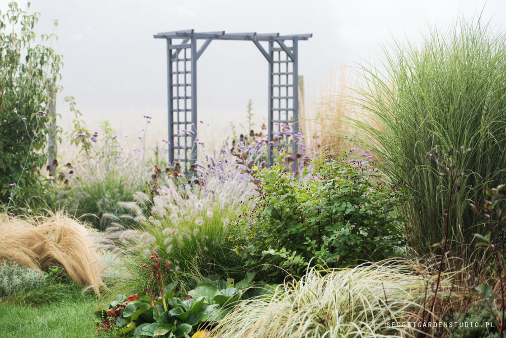 Starość nie radość, zaczęły mi się podobać róże. Ponieważ zostało trochę materiału ze szklarni oraz jakaś stara pergola, którą przemalowałam, powstały w ogrodzie nowe miejsca do obsadzenia pnączami. Po małej pergolce będzie się pięła róża (jeśli się ocknie po zimie) i tu kupiłam odmianę Jasmina, łącząc ją z clematisem w odmianie Prince Charles. Na dużą pergolę kupiłam różę francuską Louise Odier, wiosną też podsadzę ją jakimś clematisem. Z tyłu na dużej pergoli rośnie hortensja pnąca i Vitis coignetiae. Pośrodku jest ławeczka i … mam jeszcze piękne plany co do tego miejsca, ale o tym innym razem.